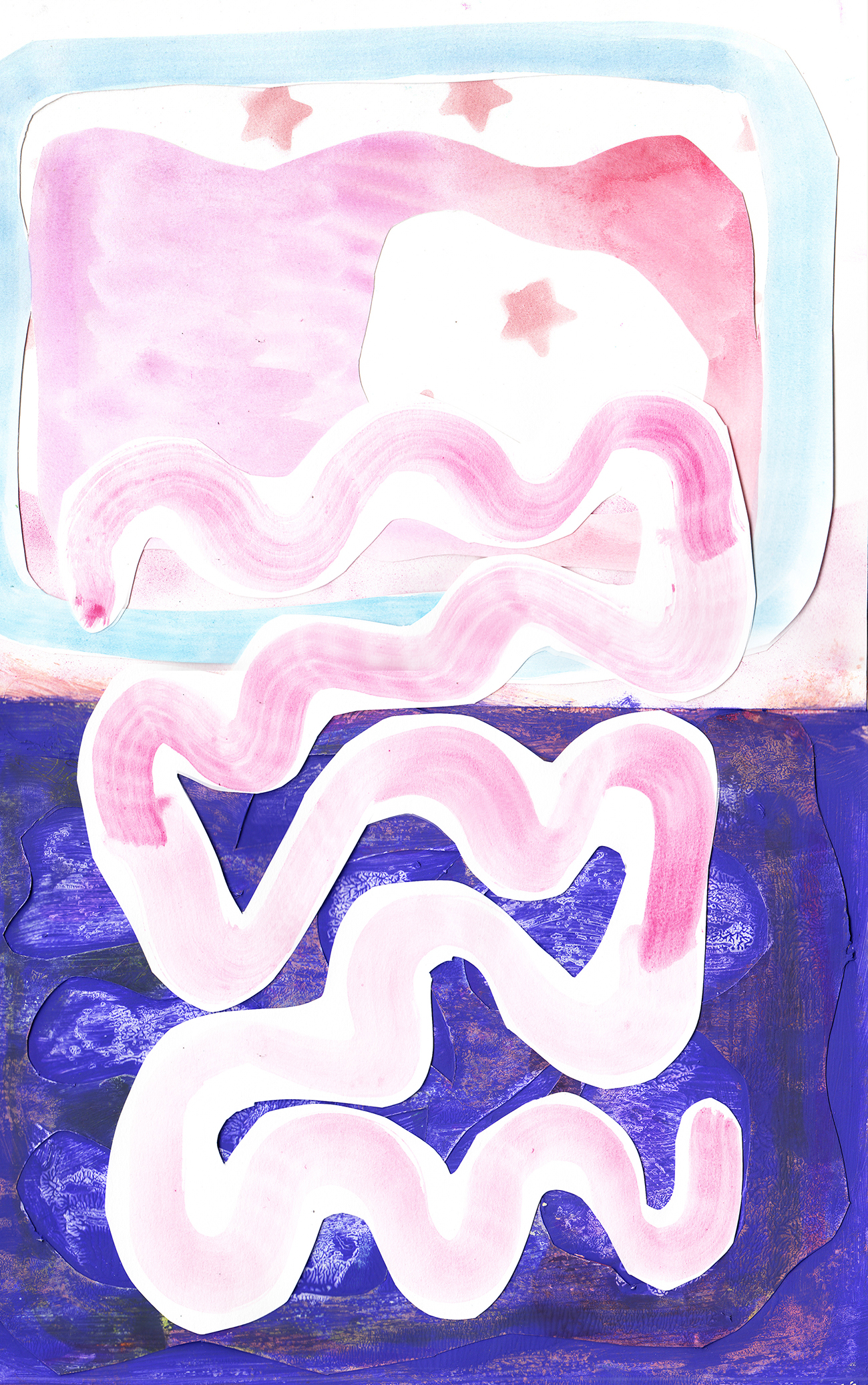 paper, gloss medium, airbrush, watercolor, latex paint, acrylic paint, ink, graphite